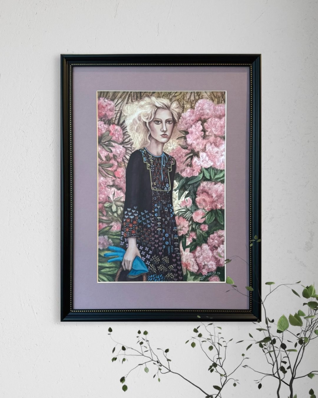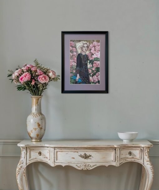 Paveikslo reprodukcija „Rožiniai bijūnai”. Įrėminimas pasirinktinai. Galimybė gauti su autorės Viktorijos Jakučinskaitės parašu. Dydis 33 x 44 cm.